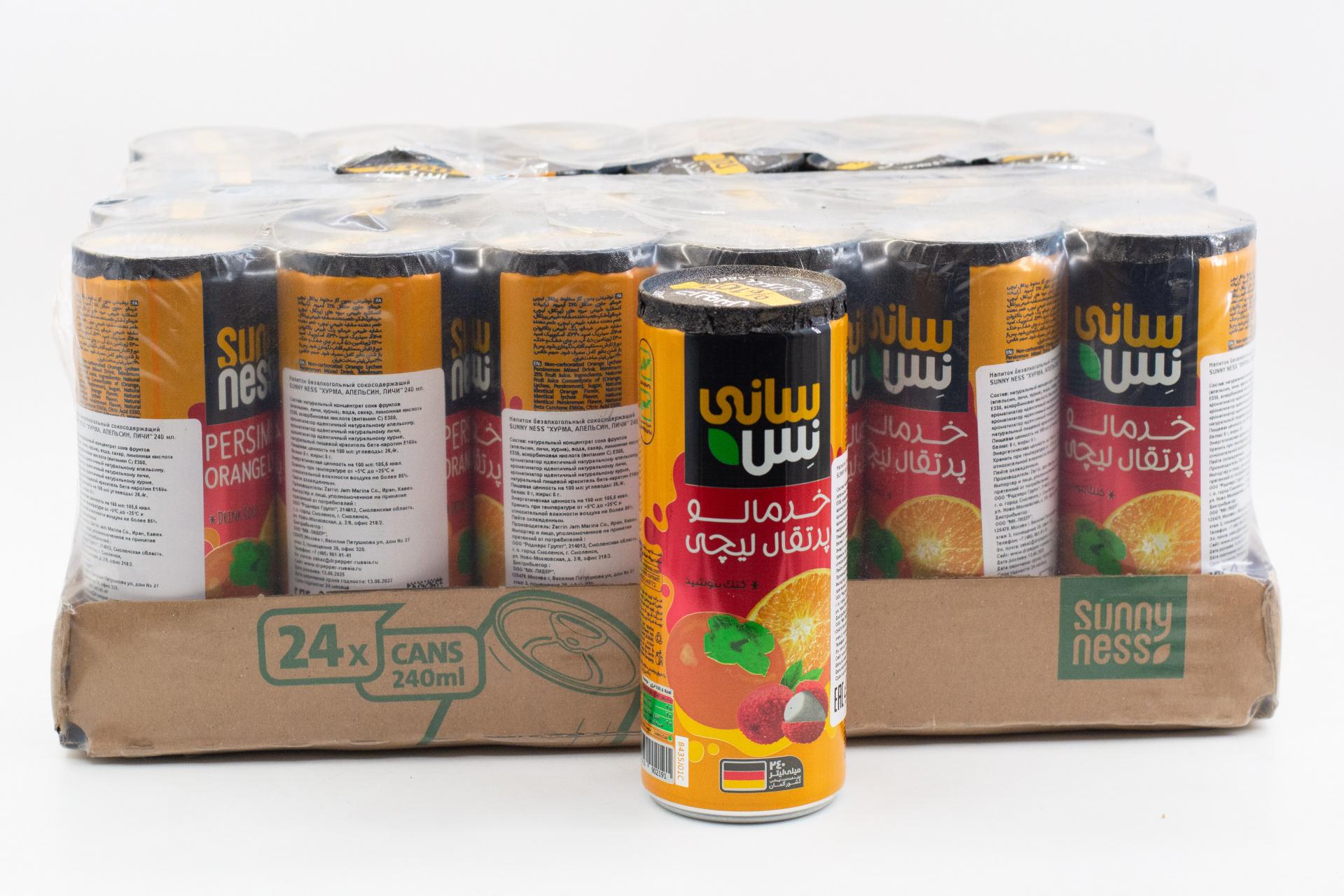 Напиток безалкогольный сокосодержащий Sunny Ness Хурма, апельсин, личи (Иран) 240мл ж/б0,00 руб. за штуку (в упак. 24 шт.) |